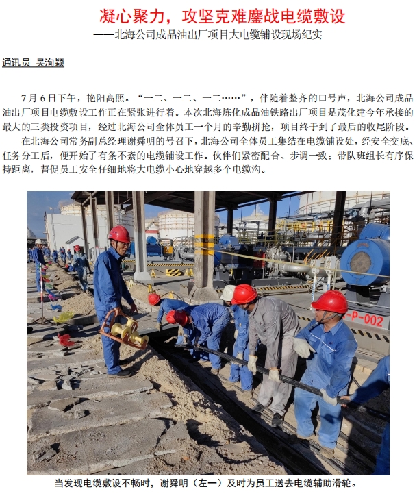 北海公司成品油出廠項目大電纜鋪設現(xiàn)場紀實