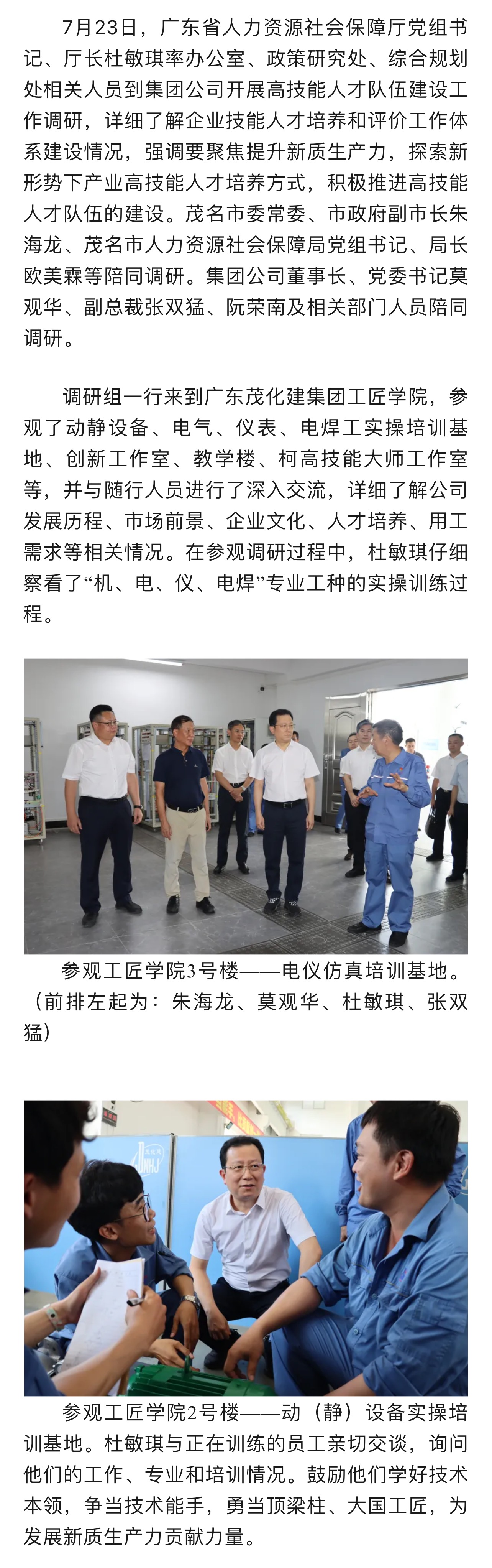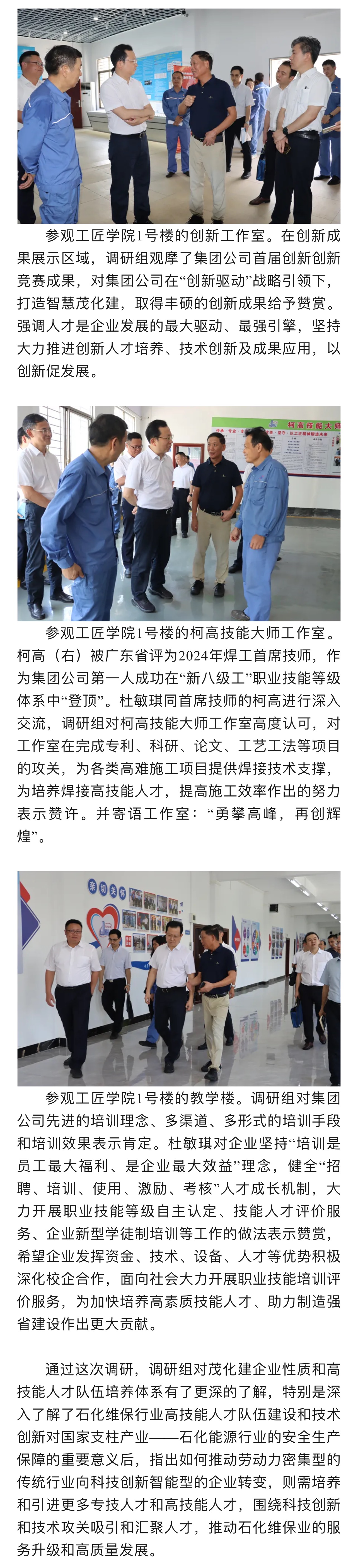 廣東省人社廳到集團公司調(diào)研高技能人才隊伍建設工作
