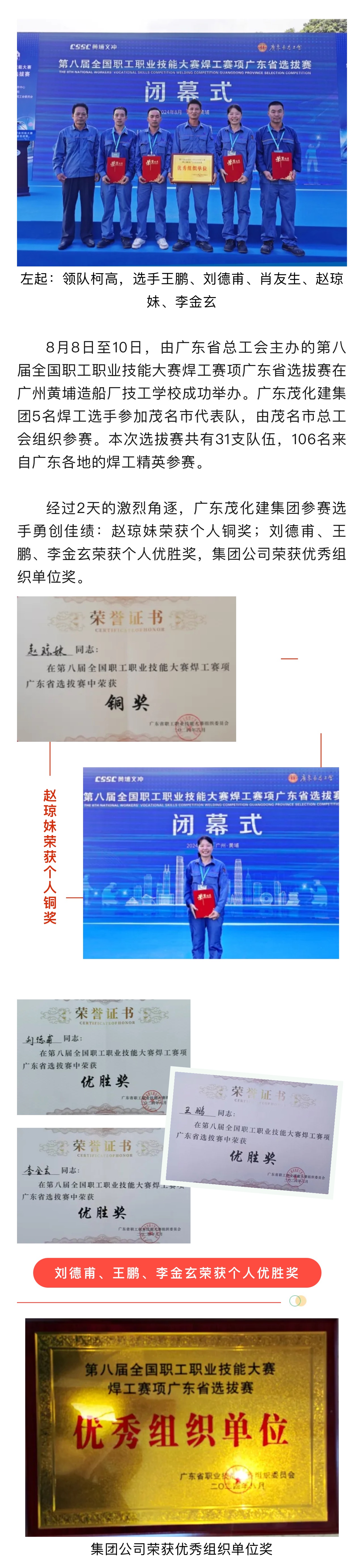 集團(tuán)公司參加第八屆全國職工職業(yè)技能大賽焊工項廣東省選拔賽創(chuàng)佳績